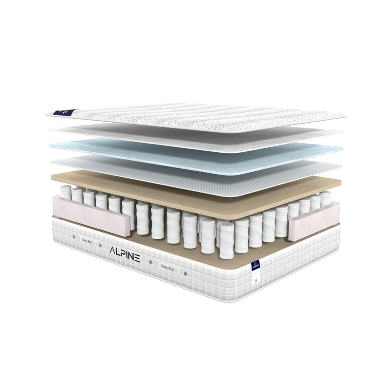 تشک الپاین از سری تشک های فنر منفصل(پاکت اسپرینگ) و دو طرف یکسان میباشد، فنر بکار رفته از نوع فنر پاکتی با مفتول منحصر به فرد و نرم است که با یک لایه ضخیم و با کیفیت اسفنجی دور تا دور اسکلت تقویت شده است که باعث افزایش طول عمر دیواره های تشک میشود ، فنر به کار رفته در این تشک کاملا طبق ارگونومی بدن طراحی شده و هر فنر به صورت جداگانه عمل میکند ، تشک آلپاین از دسته تشک های پاکت اسپرینگ نسبتا نرم به حساب می آید ، از دیگر لایه های تشک آلپاین میتوان به لایه اسفنجی جهت سهولت بیشتر ، لایه الیافی ترموفیوز جهت گردش هوای سطح تشک و پارچه گردباف سه لایه ضد تعریق، لطیف، آنتی باکتریال و ضد حساسیت اشاره کرد همچنین تشک آلپاین جزو تشک های اقتصادی گرین رست میباشد.