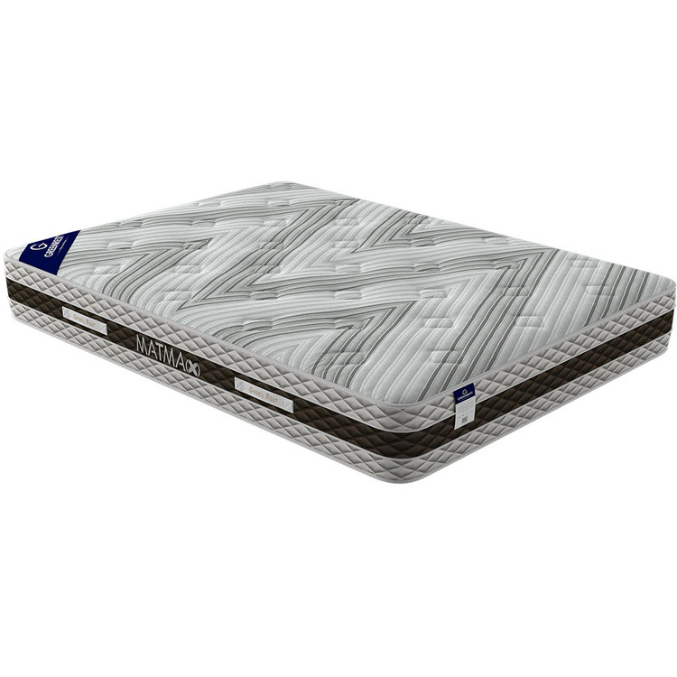 تشک مت مکس از سری تشک های فنر متصل و دو طرف یکسان می باشد فنر بکار رفته از نوع فنر میکرو بونل (دارای تعداد فنر بیشتر نسبت به فنر های مشابه)با مفتول منحصر به فرد است که با یک لایه ضخیم و با کیفیت اسفنجی دور تا دور اسکلت تقویت شده است که باعث افزایش طول عمر دیواره های تشک می شود . رویه اسکلت فنر این تشک یک لایه نمدی فشرده با گرماژ بالا به کار رفته که باعث می شود وزن بدن در سطح تشک تقسیم شود در همین راستا شما فنر ها را کمتر حس می کنید. بعد از لایه نمدی یک لایه ریباندی با دانسیته بالا و پس از آن فوم HR با فرمولاسیون منحصر به فرد به کار رفته است . فوم HRبه کار رفته در این تشک خاصیت هایی مشابه لایه لاتکس طبیعی را داراست و به همین خاطر تشک متمکس را به تشکی منحصر به فرد تبدیل کرده است .ترکیب لایه ریباندی ،فوم HR و فنر میکرو یک تشک طبی فنری با خوابی راحت را به وجود آورده است.